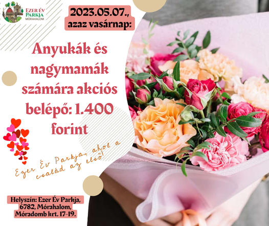 Május első vasárnapján a mórahalmi Ezer Év Parkja az édesanyák előtt tiszteleg. A neves alkalomból fakadóan több kedvezménnyel is fogunk kedveskedni az anyukák számára.