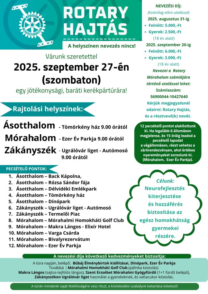 📣🚵♀️🚲 Szeptember utolsó szombati napján, 27-én kerül megrendezésre a Rotary Hajtás, amely egy olyan kerékpáros túra, amely mindig valamilyen jó ügy érdekében kerül megrendezésre. Az esemény mórahalmi ágának évek óta központi szereplője az Ezer Év Parkja.