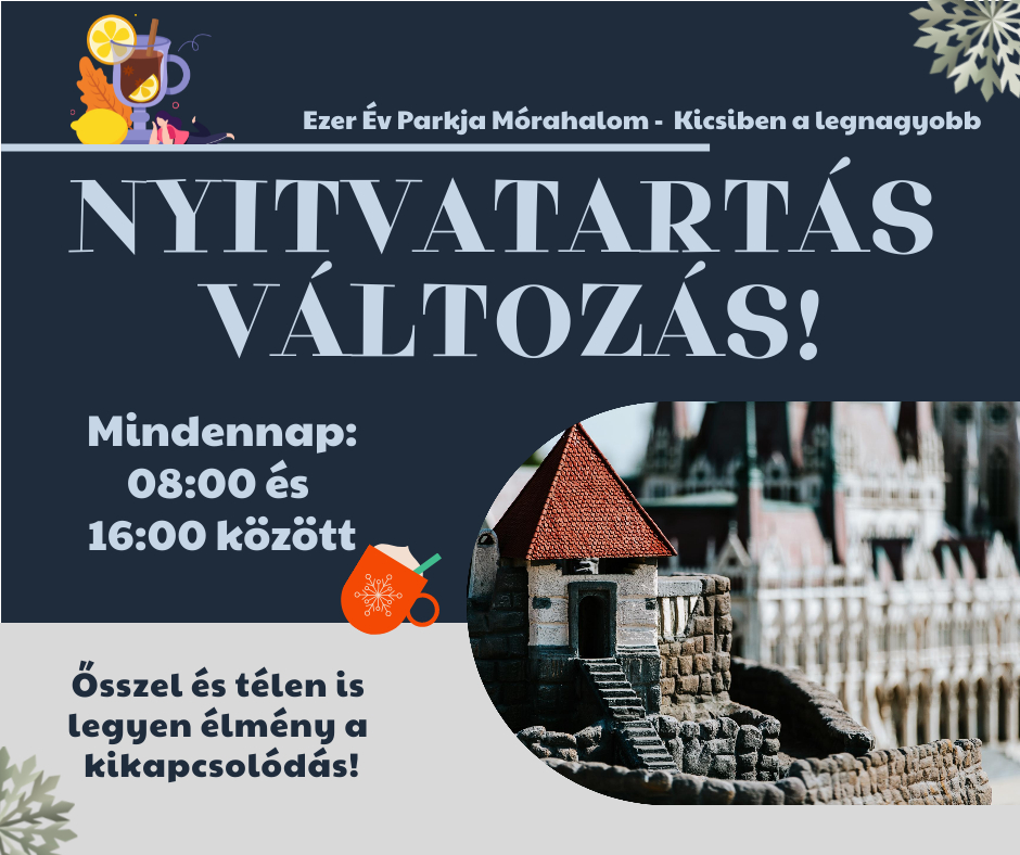 2022. november 2.-tól előreláthatólag 2023 márciusáig, a hét minden egyes napján reggel 8 órától, délután 16 óráig vagyunk nyitva.