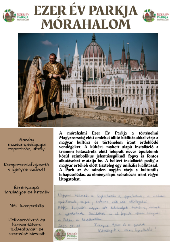 További részletekért lásd: https://pedig.hu/elfogadohelyek (A keresőfelületbe kell beírni az Ezer Év Parkja nevet, vagy Mórahalom városra rákeresni, s ezután érjük el az online felületet.)